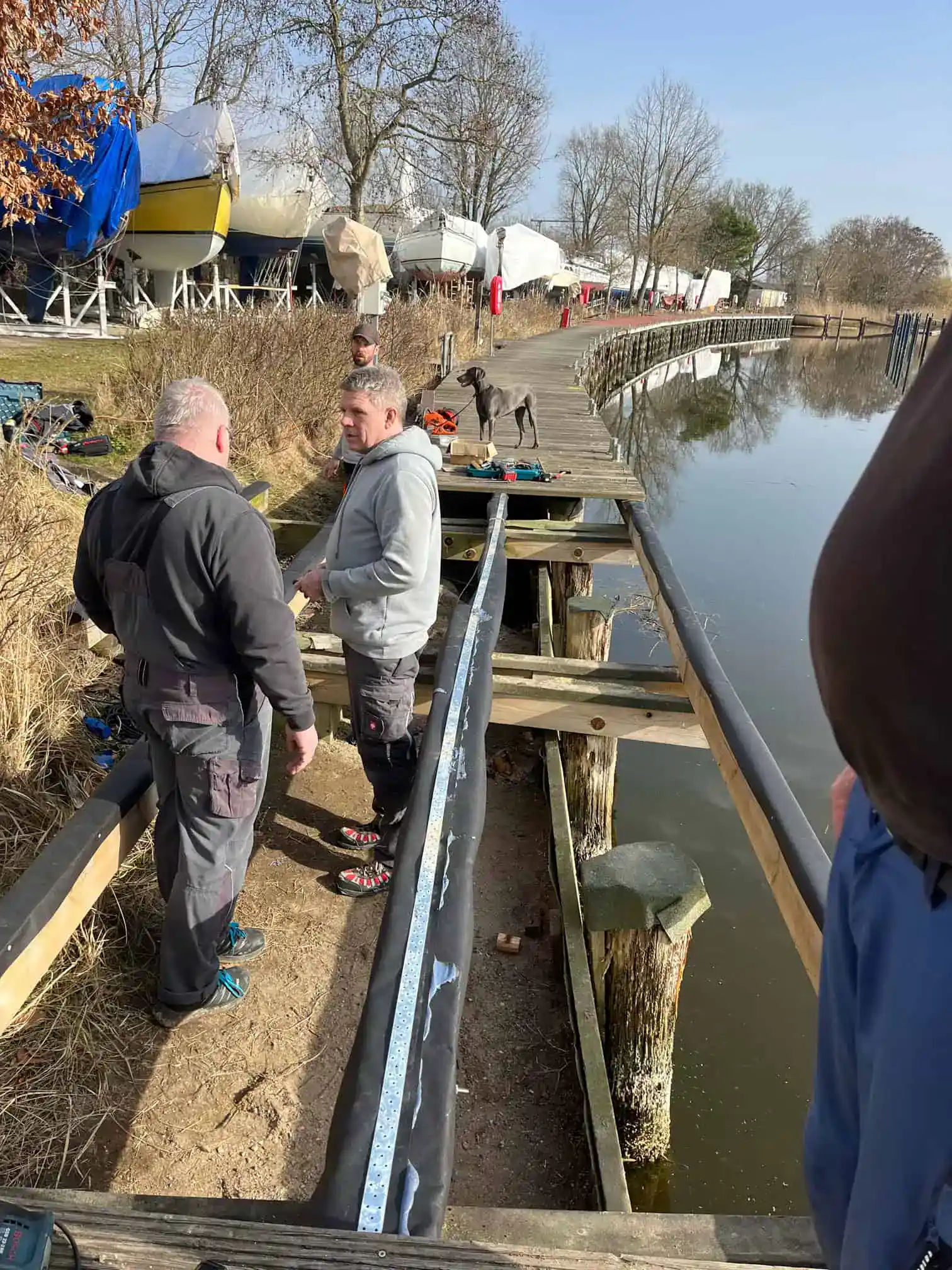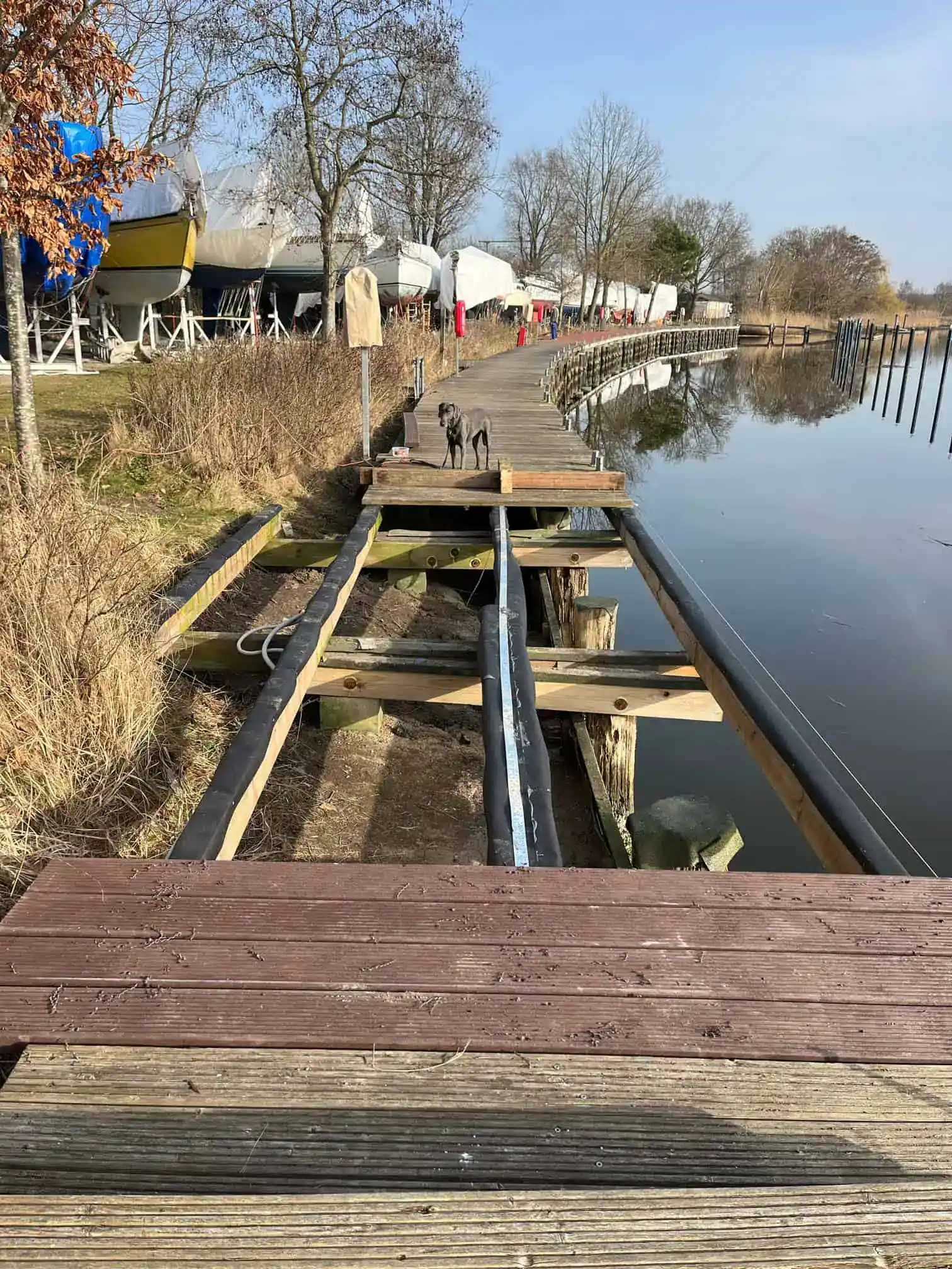 Dabei wurden Teile der Unterkonstruktion ausgetauscht und der bisherige Holzbelag durch langlebige WPC-Bohlen ersetzt. Trotz der niedrigen Temperaturen gingen die Arbeiten zügig voran, sodass der erneuerte Stegbereich nun wieder sicher und stabil genutzt werden kann.